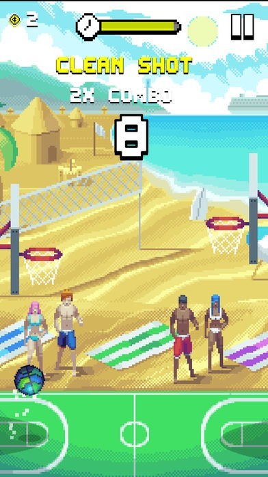 両側から交互に現れるバスケットゴールに対してシュートを決めていくゲームです。画面にタッチするとボールが少し浮き上がるので、これを上手くゴールへと誘導していきます。