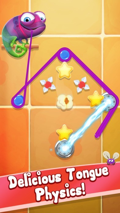 腹ぺこカメレオンの舌をいろんな方向に引き伸ばし、エサを食べさせる楽しいパズルゲームです。障害物を避けながら舌を操作するという、直感的に理解できるゲームで誰でもサクサク楽しめます。