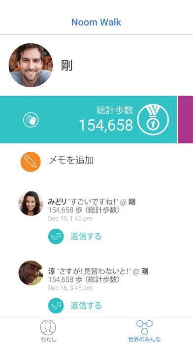 挫折しがちなウォーキングやダイエット、友達と一緒に挑戦したら継続できると思いませんか? 「Noomウォーク」は、多彩な機能を備えた歩数計アプリです。 SNSとの使いやすい連携機能も特徴となっており、Facebookとも連携可能。 友達の歩数を確認したり、努力を称えてハイタッチをすれば、モチベーションもきっと継続できるでしょう。 歩数計としてのカウントはバックグラウンドで行われるため、他のアプリを使う際にも邪魔になりません。 今日はたくさん歩いたという日には、友達に歩数を自慢しちゃいましょう!