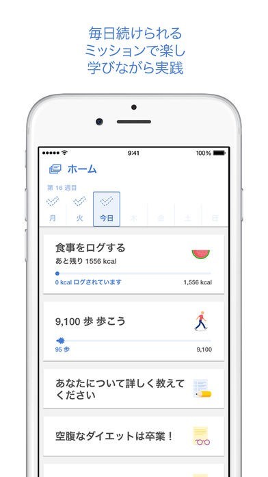 ミッション機能で課題を達成!モチベーションをアップさせながらダイエットを継続できる!
