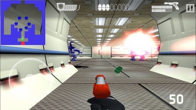 App Storeより引用Intruder Alert! Battle hostile robots in a subterranean maze. Collect power cores to level up your shield or use them as makeshift grenades. Supports MFI controllers. Compete on Game Center leaderboards.