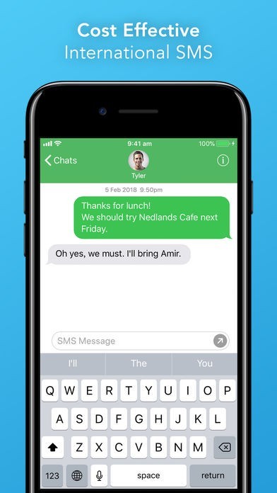 App Storeより引用World Message brings together your SMS and Instant Messages in one place. Create groups to chat with multiple people, send rich media messages, lease international phone numbers to SMS from, and much more!