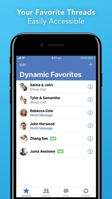 Quickly access your most frequent and important message threads instantly from the Favorites menu.