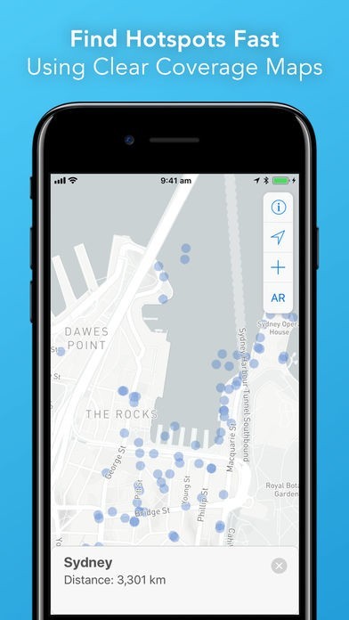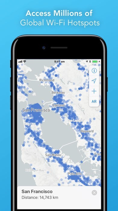AR View: For the first time, see exactly where hotspots are using World Wi-Fi’s Augmented Reality (AR) viewer. Using your phone camera, the App displays available hotspots in the real world - just walk towards the Wi-Fi.