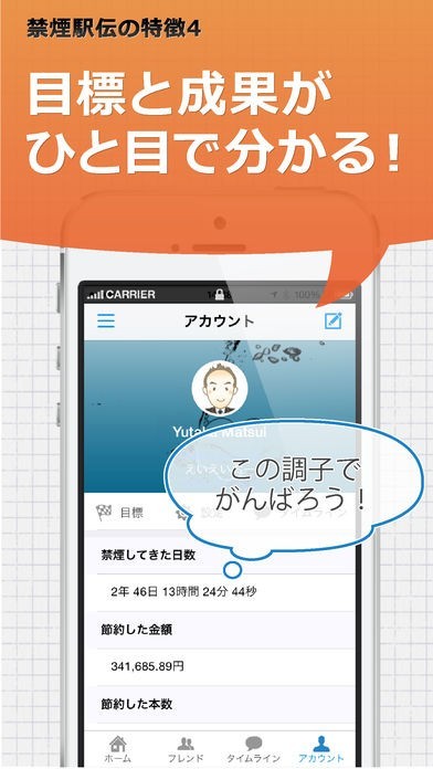 これを使う事で禁煙の状況が分かってさらに禁煙によってどれだけ寿命が延びたかという事まで教えてくれる点でもこのアプリはかなり良いです。また友人と禁煙を競う時もおすすめです。
