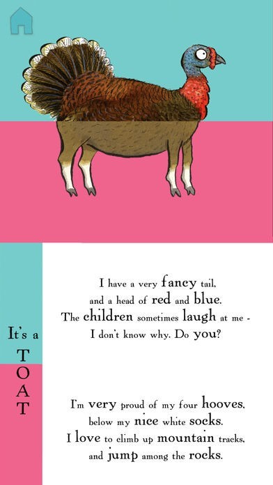 Swipe the two halves of each character to create new animals and hear each poem read aloud.