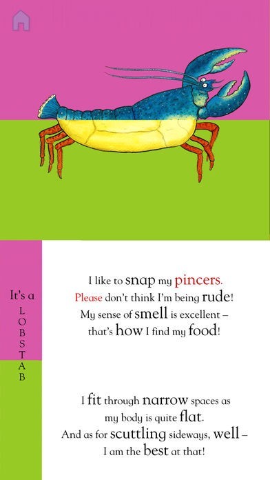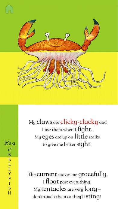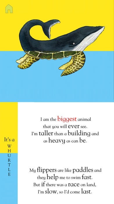Swipe any part of the screen to create new animals and hear the poem read aloud, with original sound effects, music, and text highlighting.