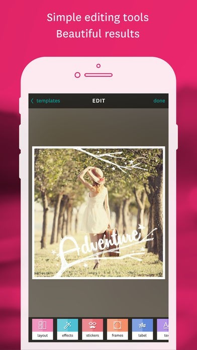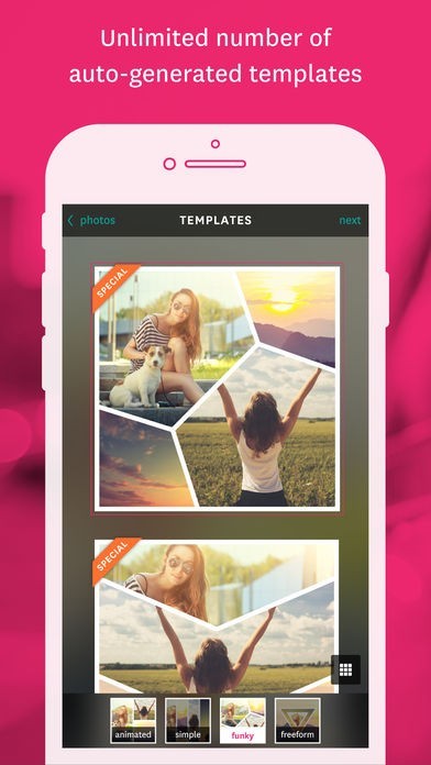 アニメーションコラージュ機能を搭載。写真とテンプレートをタップで選ぶだけと操作は簡単!