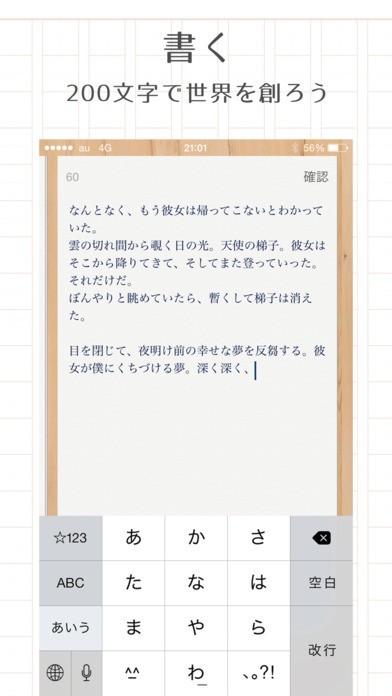 アプリを使ってユーザーが少しずつ物語を紡いでいくことができるのがノベル・ノーヴェです。自分がどのように話を進めていくのか、ほかのユーザーが考えたキャラクターがどのような活躍をしていくのかを楽しむのが醍醐味です。一人が一度に入力できる量は一つの段落で200文字です。少ない文字数でつないでいくので文章を書くのがそれほど得意でないという方でも気軽に参加できます。執筆する以外にも作品を読んで楽しむだけでも十分に遊べるアプリです。