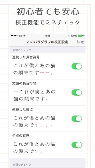 句点の使い方など細かい部分を校正してくれる