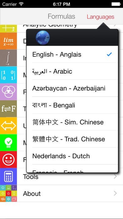 App Storeより引用数学のすべての基本公式を提供するApp Storeプレイのパーフェクトなアプリである。基礎式から複雑な式まで、高校生や大学生やエンジニアにとって簡単に作れる。内容は下記である。