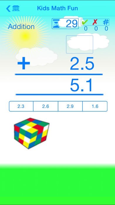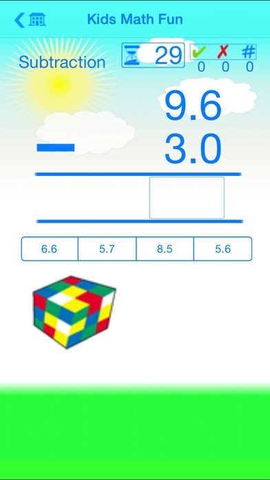 Teachers are using the Kids Math Fun applications in their classrooms to reinforce math, addition, subtraction, multiplication, and division concepts. Considering their comments, we added a “Double Dare” feature so children can expand their math skills by mastering the inverse relationship between addition and subtraction. A “Try Again” feature allows children to develop mastery by attempting a problem again if they get it wrong.