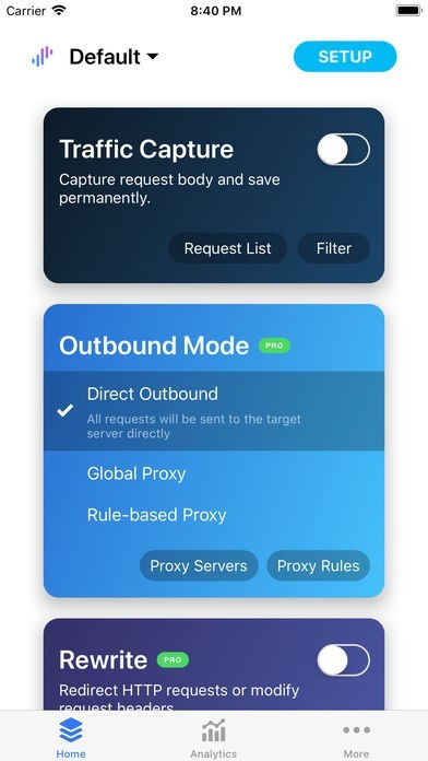 * Capture all HTTP/HTTPS/TCP traffic from any applications on your device, and redirect to an HTTP/HTTPS/SOCKS5/SOCKS5-TLS proxy server following highly configurable rules;