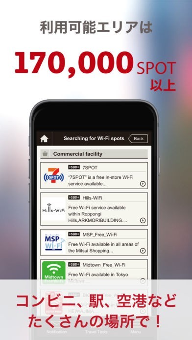 旅行で訪れた外国の方に向いていて、日本の150000箇所の無料のwifiスポットを把握できる!