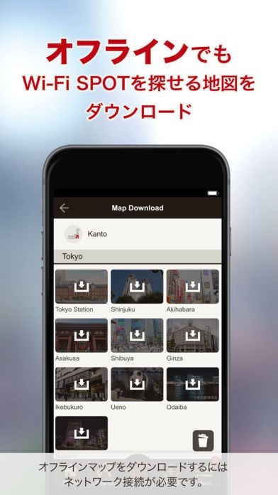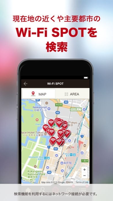 このアプリでは、日本の150000箇所の無料のワイファイ接続できる場所を紹介してくれるので、特に旅行で訪れた外国の方に向いています。 一度利用登録をしておけばあらゆる場所に素早く接続することが出来るので、手間はほとんどかかりませんし、ワンタップで素早くインターネット環境を手に入れることが出来ます。 利用できる場所は地図上に赤いマークで表示してくれるので、どこにあるのかはすぐに解ります。 加えてオフラインでもマップをダウンロードしておけば地図を見れるので、そこからスポットまで通信せずに移動することができます。