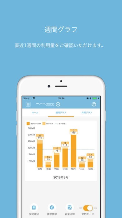このアプリを使うことによって、その日のターボ利用料とトータル量を表示してくれることから、それを見て明日からはもう少し抑えたりといった判断を下すきっかけに使うことが出来ます。 よって、ターゲットはこのサービスを実際に利用している方のみが当てはまり、それ以外の方には一切必要ありません。 ターボの「ON/OFF切替」機能を使うことが出来るのことから、状況に応じて自在に使い分けることができるので、外出先で取引をしたい場合などなどにはオンにするのが有効です。 加えて、「直近三日間」、「直近三ヶ月間」、「直近十三ヶ月間」の情報をそれぞれ見ることが出来るだけではなく、棒グラフによって変化も把握できるので、改善点を見つけ出したりでき、効率よく使用することができるようになります。 さらには、「Wifi機能」機能を使うことによってアプリで設定をすることも可能です。