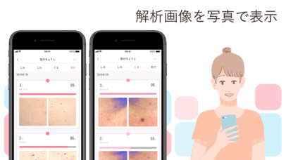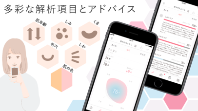 App Storeより引用\\スマホのカメラで顔を撮るだけで、肌の調子を様々な項目で分析//