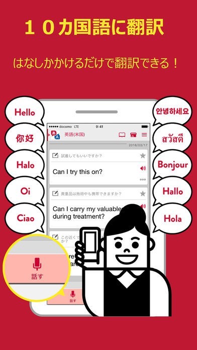 10カ国の言語に、アプリに話しかけるだけで翻訳できる