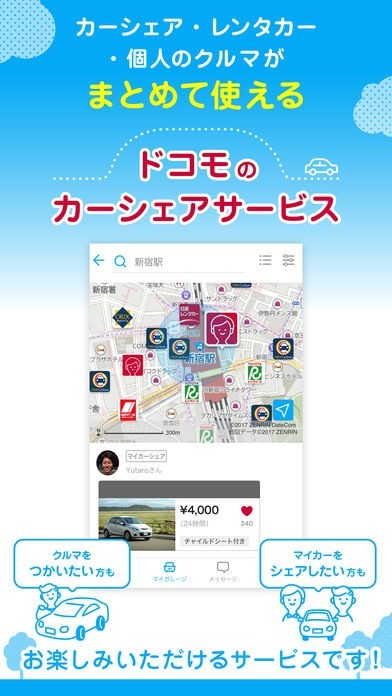 ドコモ製のカーシェアアプリ!レンタカーにも対応