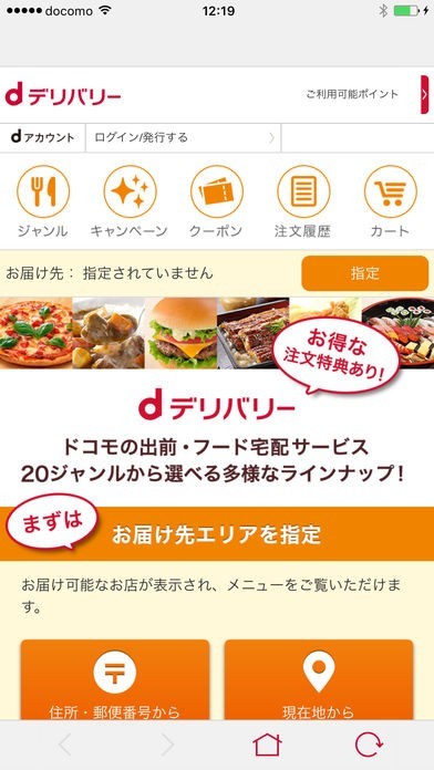 「dデリバリー」は、手軽にデリバリー注文が行える便利なアプリです。 11,000軒以上の店舗を掲載し、ピザや寿司、洋食に中華など幅広いジャンルから選んで注文できるようになっています。 配達日時や場所の指定もアプリから可能。 注文金額によって「dポイント」を貯められるのも嬉しいポイントでしょう。 また、クーポン機能を搭載しており、ここだけのお得なクーポンを利用することができます。