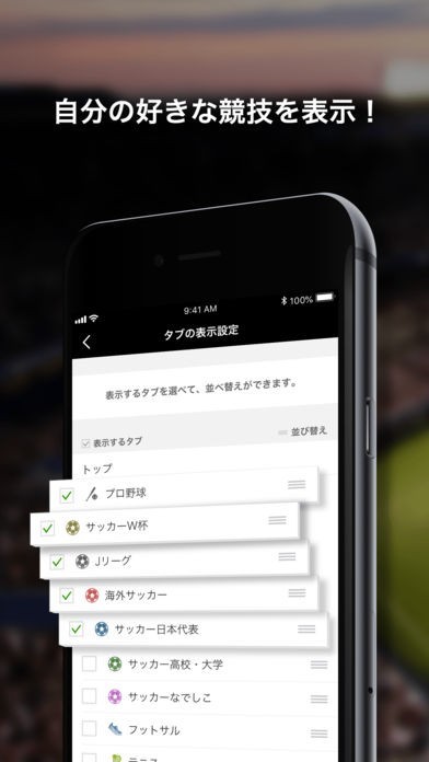 このアプリではさまざまな競技のニュースを取り扱っていますが、特に興味のある競技はアプリに登録しておきましょう。これはカスタマイズ機能の一種で、登録された競技はタブに表示されるようになります。そのため、さらに快適に最新情報を得られるようになります。