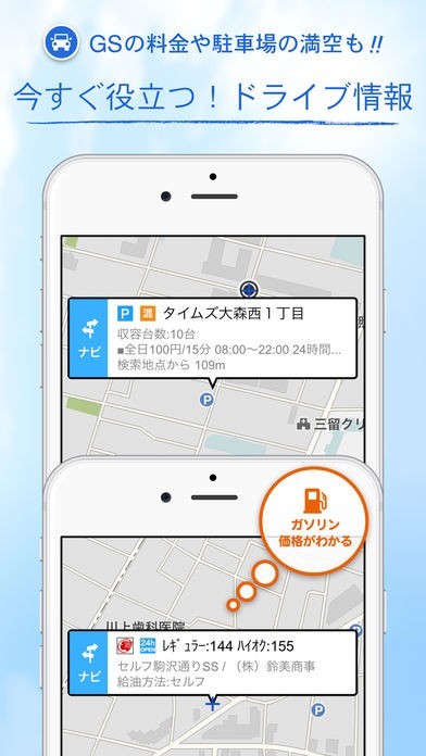スマートフォンでナビアプリを利用しているときに気になるのが最初の一歩をどちらの方向に踏み出せばいいのかという点です。ナビが常に前方向を指しているとは限らないので間違えてしまいがちですが、地図アプリを利用すればそんな悩みは解決することが出来ます。一歩目案内機能で間違いなく正しい方向へ踏み出したあとも、分かりやすい目印表示で曲がる場所をしっかりと教えてくれるようになっています。自動車で利用する人にも便利な機能として、目的地付近の駐車場の空車情報を検索出来たり、ガソリンスタンドの料金確認などの機能を利用することが出来るのも魅力となっています。
