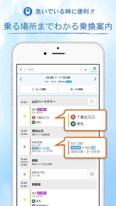 一歩目案内機能や分かりやすい目印表示で徒歩の人も迷わず進めるアプリ
