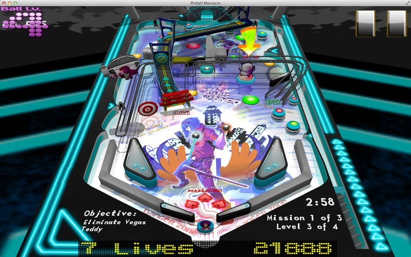 App Storeより引用Do you have what it takes to become the undisputed Pinball Master? Pinball Massacre is an arcade style pinball game (we know that sounds silly but it makes sense when you play). This first table in the Pinball Massacre series features two unique twists on classic pinball conventions. With MASSACRE MODE you need to get your flippers ready because you’re about to get hit with an angry pinball blitz. Score as many points as you can in a very short time. With the LEVEL BALL, we add an RPG twist that makes each pinball count. While a ball is in play, it gains experience and Levels Up. Scoring you more points and generally behaving more awesomely.