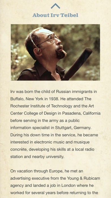 • Features informative biography of Environments creator Irv Teibel, along with concise informational screens on individual recordings.