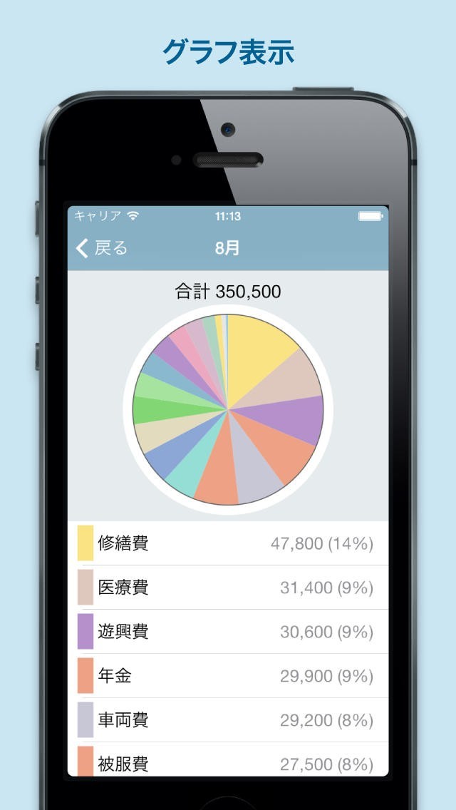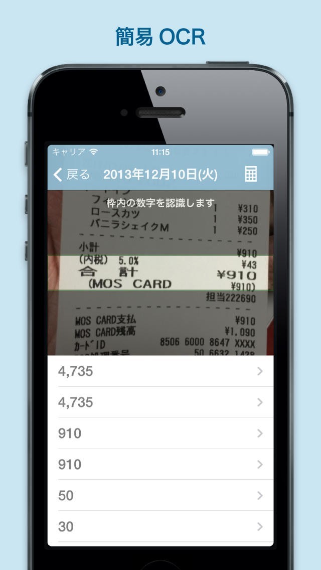 ズボラさんに使いやすとオススメ。カメラロールにある写真を選らんでOCRで楽々家計簿機能を搭載。 吸入か支出かを決めて値段を入力するだけなのでつけ忘れも防げます。 もちろん科目で分類やメモをつけることも可能です。 金額固定のものはテンプレートを設定することも可能なので、楽チンですね。 1ヶ月の予算の設定や、銀行からお金をおろした際の手数料も記入できるので痒いところに手が届く。 パスコードもつけられるのでプライバシーもばっちり守られます。