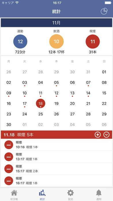 日々の喫煙状況を把握することができる