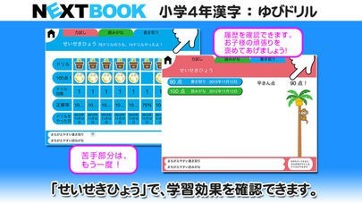 ゆびで画面に漢字を書いて書き取り練習ができるドリル。正しい「書き順」「画数」で漢字を書かないと◯と判定されません。