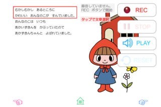 セリフを段落ごとに録音し、その音声でお話を再生することができます。