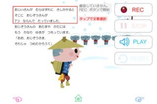セリフを段落ごとに録音し、その音声でお話を再生することができます。