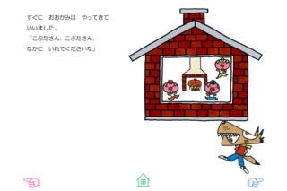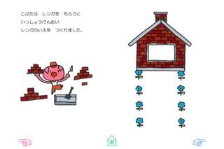 文章は中川ひろたかさんが電子絵本のためだけに書き下ろし! さらに、藤本ともひこさんのかわいらしいイラストがおはなしを彩ります!かわいいこぶたたちが自分たちで各々の家を楽しそうに建てるシーンが印象的です。しかし、一生懸命建てた家もおおかみがやってきて一息で…。