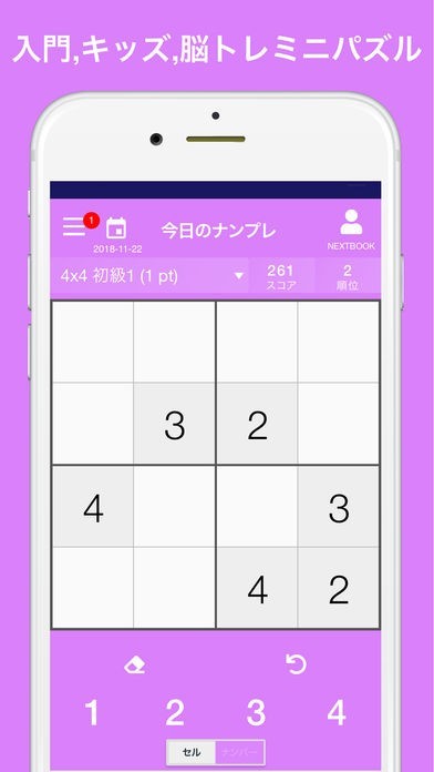 数字のパズルで脳を鍛えるナンプレ!シンプルで多機能な操作性と豊富な問題数で毎日挑戦できる脳トレゲーム