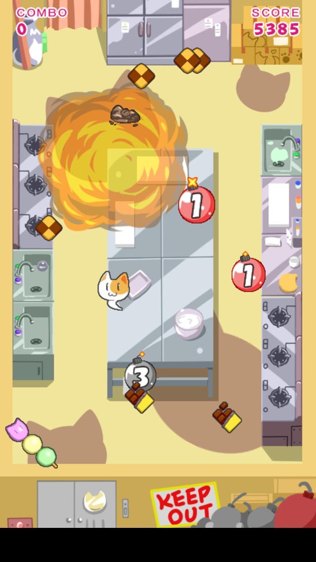 App Storeより引用爆弾をよけながらお菓子を食べまくる、どたばたアクションゲーム。