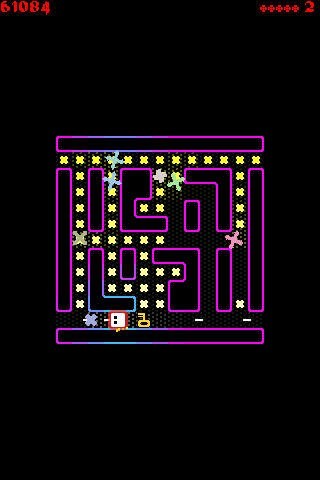 App Storeより引用Forget-Me-Not is a tiny little arcade game for one or two players. Mazes + monsters + shooting.