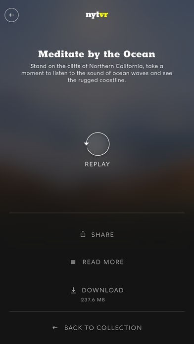 App Storeより引用Through virtual reality, The New York Times puts you at the center of the stories that only we can tell.