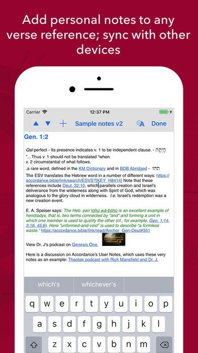 • Take notes and highlights that will sync with the desktop version of Accordance