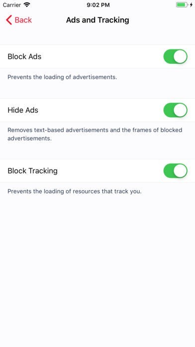 Please note that you can only enable the "Block Ads" setting. An in-app purchase is required to enable other settings or use iCloud Sync.