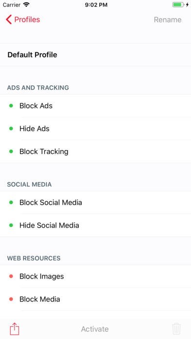 • Block ads, pop-ups, tracking, social buttons and widgets, images, videos, scripts, fonts, and more