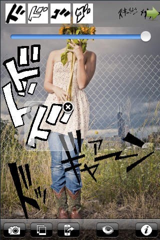 ジョジョの奇妙な冒険好きの皆様お待たせしました!あの漫画の名言をあなたの写真に取り入れることのできるアプリがこの「奇妙な写真メーカー」です。操作はラクラクで、名言や効果音を挿入したい写真を選んでタップするだけです。これだけで何気ないあなたの写真に大きなインパクトが追加されます!さらに効果音などを挿入する場所や数も自由自在で、複数の言葉を入れることも可能なのであなた好みの写真を作ることが出来ます。サイズを変えることでインパクトの大きさの調整も!このアプリで作った写真をSNSで投稿すれば同じジョジョ好きのファンが反応して新たな交流が生まれるかもしれません!