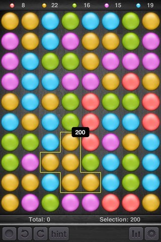 繋ぎ合わせて、消し続けて、ボールが0個になったらクリアーです。時間制限も、追加ボールもないので、焦らずにプレイができます。ボールがひとつでも残ったら、失敗です。