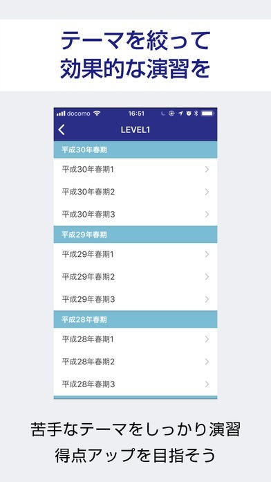 App Storeより引用過去の試験の傾向と対策を把握して試験の合格率アップを目指しましょう!