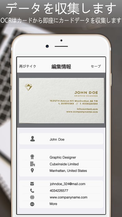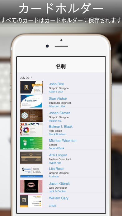 カメラをかざすだけで名刺の情報をスキャン出来る