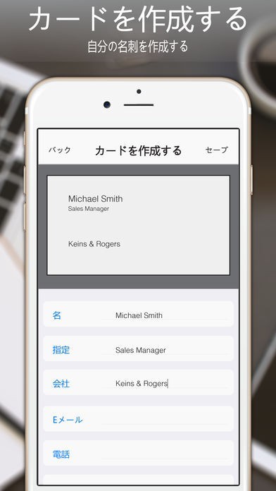 会社名や連絡先を登録するだけで自分の名刺が簡単に作成出来るようになっています。Facebook等のSNSにアップロード出来るので、名刺を共有させたい時にも役立ちますよ。