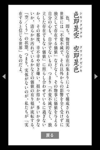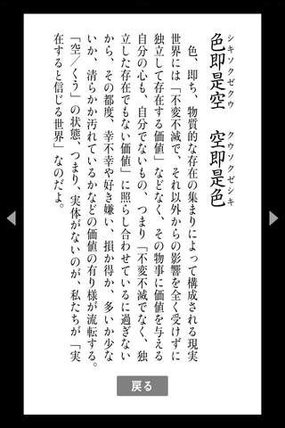 また、画面タップによる文節解説表示と、般若心経を身に付く「読経」(2種類)も流れます。
