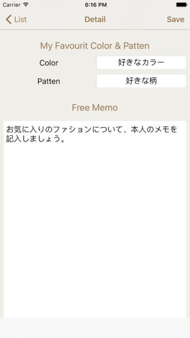 洋服のサイズを細かくメモしておくことができるメモアプリ!