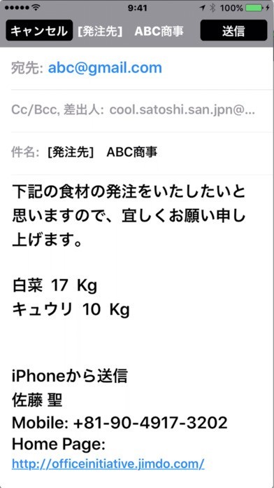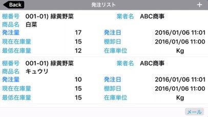 食材の最低在庫量を決めることにより、発注リストを自動作成してくれるため手間が省けます。食材担当者が、自動作成される発注メールを送信することにより注文が確定するので、アプリによる誤発注はありません。